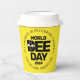 Make May 20th (World Bee Day) a memorable event with these paper cups, which feature the 2024 theme "Bee Engaged in Pollinator-Friendly Agricultural Production" encircling the words World Bee Day 2024 with a stylised honeybee hovering over the letter B. Reverse shows identical design.
