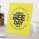 Make May 20th (World Bee Day) a memorable event with this pedestal sign, which features the 2024 theme "Bee Engaged in Pollinator-Friendly Agricultural Production" encircling the words World Bee Day 2024 with a stylised honeybee hovering over the letter B.