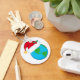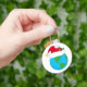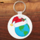 A globe of the world with a christmas hat on it. This design looks really effective on this Keychain