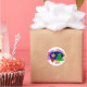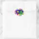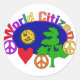 A colourful rainbow design of peace symbols to protest against war, a tree and sun to save the planet's resources, and a heart to love one another ties in the words: "World Citizen."