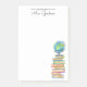 Cute colourful post-its for a school teacher, librarian or fellow bookworm. Simple name in black script lettering with a book stack propped against the border, topped by a globe. Perfect for kindergarten or elementary teachers.