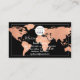 World Globe Map Travel Agency Copper Rose Black Business Card