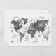 World Map Art Black White Nautical Postcard