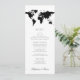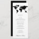 World map travel theme menu card template with editable colours and fonts so you can match your destination wedding location or theme colours.