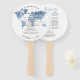 Blue and white World Map Wedding Program Fan for a travel theme or destination wedding. Customising is super easy, you can change fonts, text colour, background colour, and design by clicking CUSTOMIZE FURTHER.