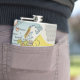 The flask itself is fine. It’s a cheap flask, obviously bought in bulk, however am prepared to overlook that. Given that it is a personalized item, I would have liked to have seen gift boxing instead of the generic packaging. Terrible printing, and/or quality. It’s a cheap, tacky vinyl. It is not cut straight and is also applied in a way that it is overhanging the bottom, causing the glue to catch on items and it will eventually roll and tear, damaging the wrap.