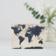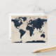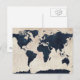 World Map Distressed Navy Postcard