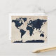 Distressed grunge style map of the world in Navy and Beige/Cream.