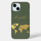 World map gold travelers monogrammed green Case-Mate iPhone case