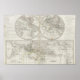 Vintage map by Alexandre Delamarche. Shows two hemispherical maps of the world and a map of the Oceania region. Published in 1850. © Bridgeman Images