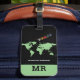 Cool black and sage design to identify your travel bags... personalised with your name and with the image of the map of world