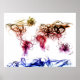 A map of the world made from moving beams of light. The moving light was captured on camera using long exposures. This method of capturing moving light is known as light painting, or light writing. The image was then inverted to result in a white background.