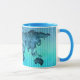 World Map | Neon Blue Stripes Mug