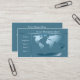 An ocean blue graphic world map design by artist/designer Charmaine Paulson on an indestructible business card. ©2012charmainepaulson