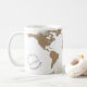 Wrap-around world map mug featuring the text “Planning my next adventure” and an optional name in black. Text and name are fully customizable or removable.