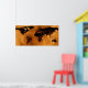 Map of the world in rich, earthy brown tones in grunge vintage style.