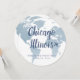 Travel Theme Table Name Cards with a Dusty Blue World Map and Custom Location Text lets you create your own unique table "numbers" that are named after your favourite city, state, or country, or important destinations in your life. The aeroplane icon graphic can be moved or removed, and background colours and fonts can be changed using the advance template editor.