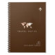 Dark brown background with the image of small map of world and an aeroplane, personalised with the name and initials of the stylish traveller... for small travel notes