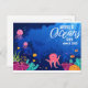 Celebrate World Oceans Day with this vibrant and fun underwater-themed postcard, featuring colourful sea creatures like octopuses, jellyfish, coral reefs, and tropical fish. The deep blue ocean scene captures the beauty and diversity of marine life, making it perfect for environmental awareness campaigns, classroom activities, or eco-conscious mailings.