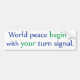 World Peace Begins with Your Turn Signal Bumper Sticker