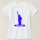 Statue of Liberty silhouette in royal blue colour with words of world peace T_Shirt. Text can be personalised.
