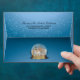 A snowglobe featuring some of the world's most recognised landmarks is the perfect focal piece for the adventurous Bar Mitzvah boy or Bat Mitzvah girl, or at least one who dreams of travelling to fabulous places. A snow globe stamped with a Star of David on the bottom back flap of this envelope with a return address printing on the top flap. Inside the snow globe, landmarks include the Statue of Liberty, The Arch de Triomphe, Eiffel Tower, Taj Mahal, St. Basil's Cathedral, the Learning Tower of Pisa, the Pyramids and a Chinese style building. The blue snowy background mimics the inside "snow" of the snow globe. The interior reveals a portion of the world map. Available with matching products.