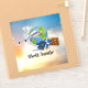 World Traveler, Design 2, tickets, passport, suitcase...ready to go! Colorful graphic design.