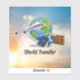 World Traveller, Design 2, tickets, passport, suitcase...ready to go! Colourful graphic design.