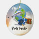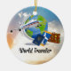 World Traveller, Design 2, with Christmas holly Ceramic Ornament