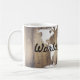 Think of your world travels as you sip your coffee or tea from this stylish world map mug. Rustic and elegant world traveller mug with rustic antique looking wood planks and a white world map silhouette.