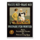 "Waste not, want not. Prepare for winter. Save perishable foods by preserving now." Date Between 1914 and 1918. Food waste is "any food substance, raw or cooked, which is discarded, or intended or required to be discarded", according to the legal definition of waste by the EU Commission. Since there are several definitions of waste, equally many definitions of food waste exist; professional bodies, including international organisations, state governments and secretariats may formally have their own defintions. The definition of waste is a contended subject, often defined on a situational basis, so it follows that food waste is the same; professional bodies, including international organisations, state governments and secretariats may formally have their own definitions. In 1975, the European Commission, the executive branch of the European Union, legally defined waste for countries in the Union as: "any substance or object which the holder disposes of or is required to dispose of pursuant to the provisions of national law in force". This directive (75/442/EEC) was amended in 1991 (by 91/156), with the addition of "categories of waste" (Annexe I) and the omission of any reference to national law. Annexe I categorises types of waste by how they occur, and some categories appear specific to certain waste types; "Products whose date for appropriate use has expired" targets food waste, with "date" referring to the expiry date of a food. The United States Environmental Protection Agency defines food waste for the United States as being: "Uneaten food and food preparation wastes from residences and commercial establishments such as grocery stores, restaurants, and produce stands, institutional cafeterias and kitchens, and industrial sources like employee lunchrooms". Although it is a nation-wide agency, states are free to define food waste individually, according to policies, preference and other definitions, though many choose not to. Overall, the definition of food waste can vary in many ways, including, but not limited to: what food waste consists of, how food waste is produced, and where/what it is discarded from/generated by. The definition can be varied and complicated by other issues; certain groups do not consider (or have traditionally not considered) food waste to be a waste material, due to its applications; some definitions of what food waste consists of are based on other waste definitions (e.g. agricultural waste), and which materials do not meet their definitions. Prevention One way of dealing with food waste is to reduce its creation. This attitude has been promoted by campaigns from advisory and environmental groups, and by concentrated media attention on the subject. Consumers can reduce their food waste output at point-of-purchase and in their home by adopting some simple measures; planning when shopping for food is important, spontaneous purchases are shown as often the most wasteful; proper knowledge of food storage reduces foods becoming inedible and thrown away. Collection In areas where waste collection is a public function, food waste is usually managed by the same governmental organisation as other waste collection. Most food waste is combined with general waste at the source. Separate collections have the advantage that food wastes can be disposed of in ways not applicable to other wastes. From the end of the 19th century through the middle of the twentieth century, many municipalities collected food waste (called "garbage" as opposed to "trash") separately. This was typically disinfected by steaming and fed to pigs, either on private farms or in municipal piggeries. Separate kerbside collection of food waste is now being revived in some areas. To keep collection costs down and raise the rate of food waste segregation, some local authorities, especially in Europe, have introduced "alternate weekly collections" of biodegradable waste (including e.g. garden waste), which enable a wider range of recyclable materials to be collected at reasonable cost, and improve their collection rates. However, they result in a two week wait before the waste will be collected. So there is criticism that, particularly during hot weather, food waste rots and stinks, and attracts vermin. Much kitchen waste also leaves the home through garbage disposal units.