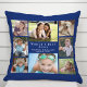 Give the world's best aunt a fun custom photo collage pillow that she will treasure for years. Personalise with eight photos of nieces, nephews, other family members, pets, etc., customise the expression "World's Best Aunt" and whether she is called "Auntie," "Tia," etc., and add names as a signature, all in white typography against a navy blue background.