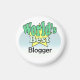 Wereld's beste Blogger magneet. Voor de beste Blogger in de hele wereld! groene letters en op de achtergrond blauw met een gele ster
