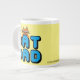 World's Best CAT DAD Cute Cat Giant Coffee Mug. This coffee mug design reads World's Best CAT DAD with a cute orange cat peeking down from the A in CAT! Background colour is light yellow. A name can be added (optional) Its the purr-fect gift for any cat dad!