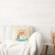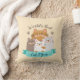 Adorable brown, grey and white cats illustration with ribbon, paws, dotted beige background and text "World's Best Cat Mum" on throw pillow.