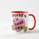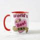 Great product, good delivery time, and an awesome idea for a gift! It was even better than I could have imagined, the customisation is incredible. The colour is perfect, it's dishwashable and microwaveable, the text print on the mug looks exactly like I wanted it to look and best of all, it's a large sized mug that you can drink plenty of coffee or whatever you want! I gifted this to my father and he loves it. He drinks coffee with that mug everyday :) I recommend.