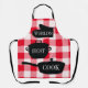 World's Best Cook Red White Gingham Check Pattern Apron - Give mum, dad, or your favourite cook this vintage looking red and white check gingham pattern apron featuring kitchen tools and pots, including an oven mitt, pot, and skillet, with the words "World's Best Cook." Great Christmas gift to keep them cooking!
