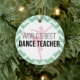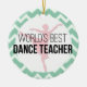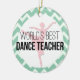 The statement "World's Best Dance Teacher" stands on top of a light pink ballerina in the arabesque pose. A border of mint chevron brings the design all together. A cute and trendy gift for those awesome teachers of dance :)