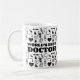 This mug makes a special gift for your favourite Doctor! It features hand drawn doodles of fun themed icons like a stethoscope, blood pressure cuff, bandage, cup of coffee, and more! Text reads, "World's Best Doctor".