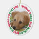 Show a little love to your furry friends with these photo ornaments. This memento features your favourite cute dog moment with the text "World's best dog" as the border. Further personalise the back with your dog's name, which sits on a paw print. These pet ornaments are perfect for pet lovers or anyone who just recently become a dog owner.
