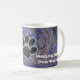 This "World's Best Dog Walker" morning tea or coffee mug features a blue spiral pattern along with a black paw print. The swirl is centred on the mug and radiates out and around towards the handle. The text is featured on both sides of the mug and can easily be customised.