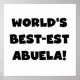 Black text and white text World's Best-est Abuela T-shirts, mugs, hoodies, cards, tote bags, magnets, keepsakes, and other world's best abuela gear. Great gifts for great grandparents!