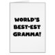 Black text and white text World's Best-est Gramma T-shirts, mugs, hoodies, cards, tote bags, magnets, keepsakes, and other world's best gramma gear. Great gifts for great grandparents!