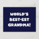 White text World's Best-est Grandma T-shirts, mugs, hoodies, cards, tote bags, magnets, keepsakes, and other world's best grandma gear.