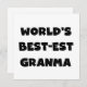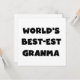 Black text and white text World's Best-est Granma T-shirts, mugs, hoodies, cards, tote bags, magnets, keepsakes, and other world's best granma gear. Great gifts for great grandparents!