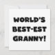 Black text World's Best-est Granny T-shirts, mugs, hoodies, cards, tote bags, magnets, keepsakes, and other world's best granny gear. Great gifts for great grandparents!
