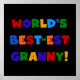 The world's best granny will love our World's Best-est Granny T-shirts, hoodies, mugs, cards, granny keepsakes, magnets, stickers, and more with a multicolored text design! Great gifts for great grandparents!