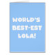 Black text and white text World's Best-est Lola T-shirts, mugs, hoodies, cards, tote bags, magnets, keepsakes, and other world's best lola gear. Great gifts for great grandparents!
