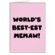 Black text and white text World's Best-est Memaw T-shirts, mugs, hoodies, cards, tote bags, magnets, keepsakes, and other world's best memaw gear. Great gifts for great grandparents!