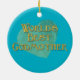 Customisable background colours highlight this "World's Best Godmother" Christmas holiday ornament.